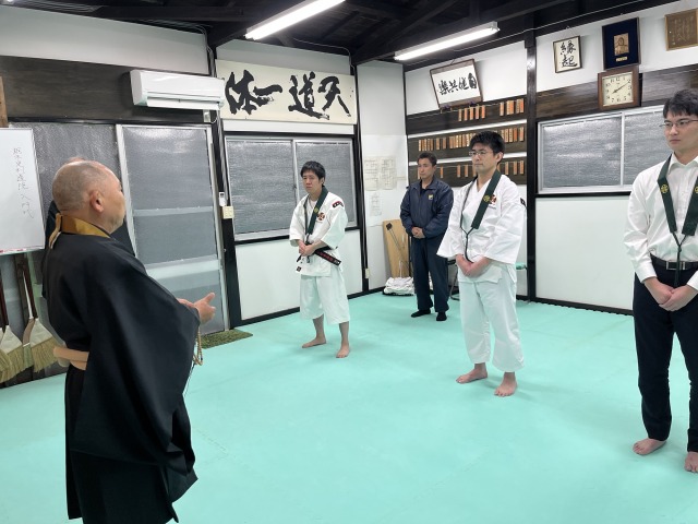2月17日(火)に今年初めての入門式を行いました。若い頃は柔道一筋、39歳のNさん。一昨年のJr・親子スポーツ教室に参加された事、40歳を前に何かやってみたいと思った事が入門のきっかけですとの本人のお話しがありました。😃道院として、今年は3名以上の入門者受け入れが目標です。先ず2月に入門式を行えた事に感謝の思いです。😌法話では「宇宙の法則・ダーマの分霊として我々の存在はあります。その命を自分の為、周りの人の為、社会の為に活かす生き方が出来るように一緒に修行して参りましょう。」そして、「お知り合いで少林寺拳法に興味を持つ方が居たら是非見学に誘ってください。」とお話しさせて頂きました。☺️