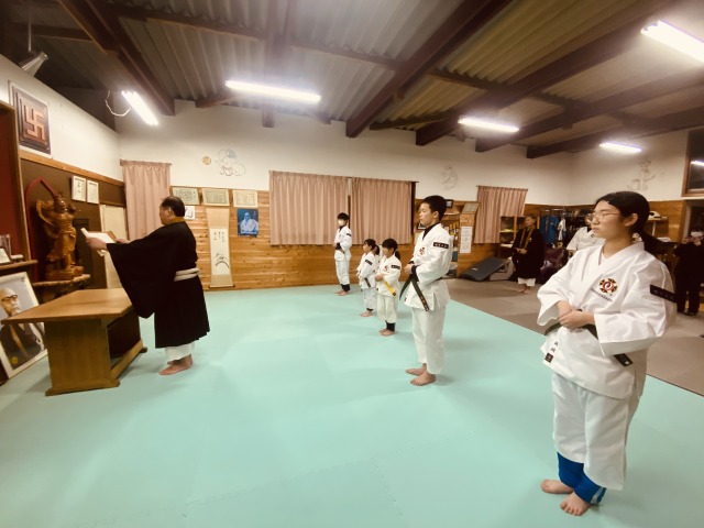 2026.3.16に入門式を執り行いました。今回は、昨年度入門した3名の拳士について修行をスタートする節目となりました。道院長より何事も始めることはたやすいがその初心の気持ちを維持しつつ継続することは、少林寺拳法の修行に関わらず難しく是非継続して修練して下さいとのお話がありました。今回入門された拳士のみなさん「身心一如の修行道」に入門されたのは、偶然ではなく縁によるものだと思います。本日誓った初心を胸に留め、末長く修行され身心共に強くなっていかれることを強く願います。