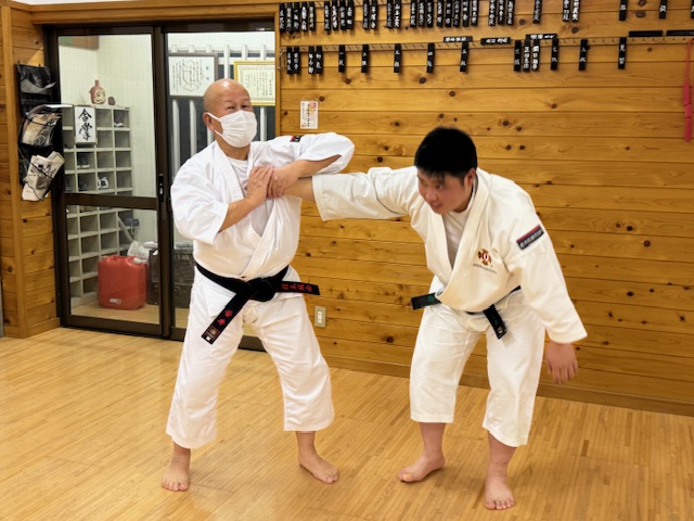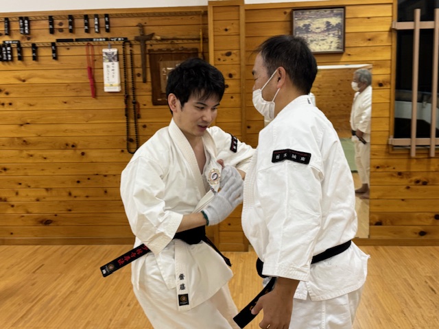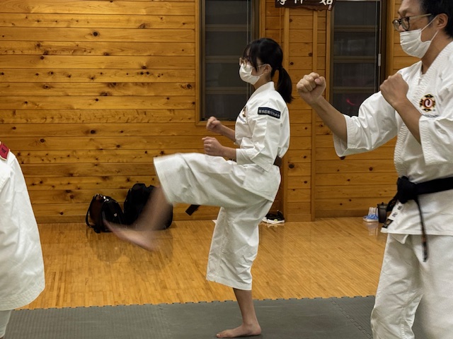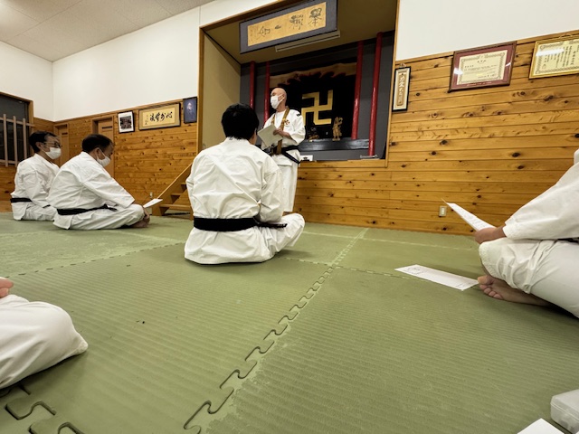 昇級考試では,一般6級と少年部2級の拳士が試験を実施しました。2名ともに一生懸命に緊張しながらも修練してきた技を出していました。
