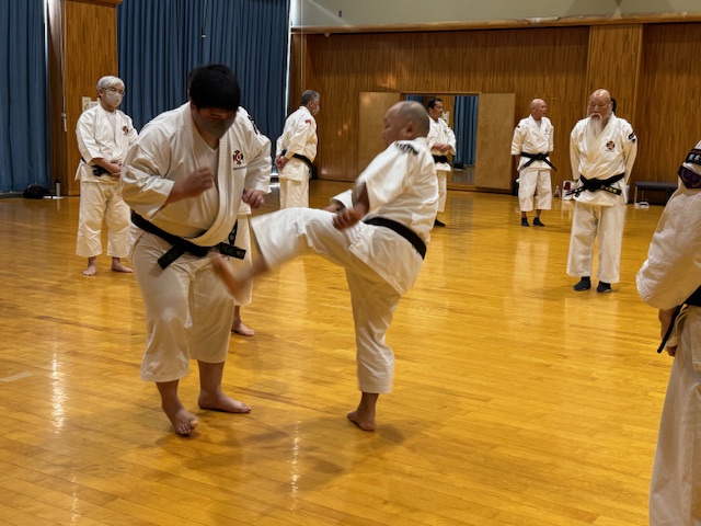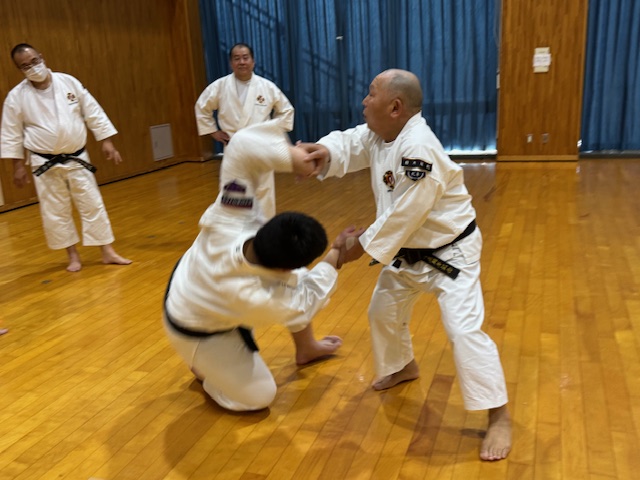 四段以上は河面先生の指導でしたが,河面先生の日頃の修練の気付きを拳士に指導して頂き,和気あいあいと楽しむことができました。初めての感覚を味わうことができ良い刺激になりました。